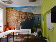 ダブリン南部郊外の港町かつ高級住宅地として知られる、ダンレアリーにあり、15教室を有する中規模語学学校です。1989年創立と比較的古く、安定して高品質の授業を提供してきていながら、比較的目立たない穴場校の一つです。最大の特徴は授業時間の長さで、最近増えている週15時間という最低時間数のコースがなく、朝がゆっくりな分、毎日午後2時まで授業がある上、その後も週2回、会話の授業を全員が受けるという真面目・長時間型のカリキュラムです。また、クラス最高10名という、今やダブリンでは珍しくなった少人数制も特徴です。学校周辺が住宅地のため、ホストファミリーは基本的に徒歩30分以内です。なお、試験コースは一応設定されていますが、一般英語の授業時間数が長いため、一般英語コースの中でレベルに応じて試験対策授業が取り入れられています。そのため、試験対策だけをフルタイムでやるコースは実質はほとんど開講されていないということです。